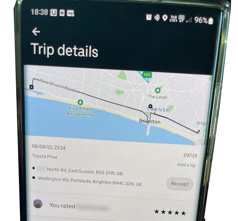 These two examples show the shocking Uber charges, which includes during a recent Pride event in the city of an Uber user being charged nearly £100 to travel just three miles.